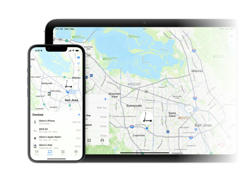Enabling Apple Find My via Segway-Ninebot App and pairing it with your eKickScooter allows you to conveniently locate your KickScooter via the ''Find My'' App on your iPhone. *Only available for users of Apple device of iOS 14.5, iPad OS 14.5 and Mac OS Big Sur 11.1 and above. *This feature needs to be enabled via Segway-Ninebot APP.